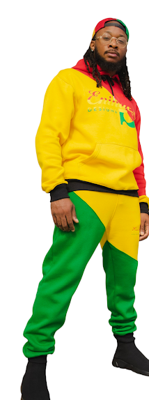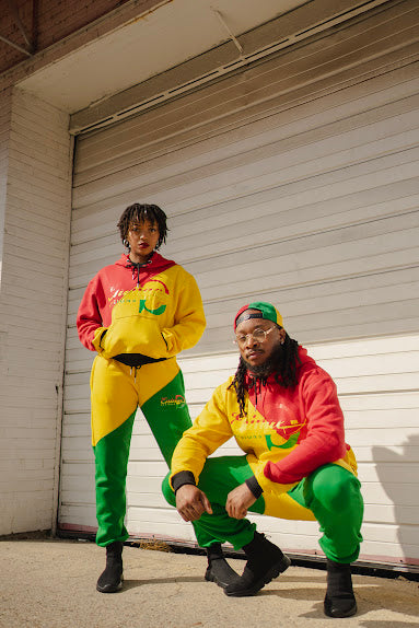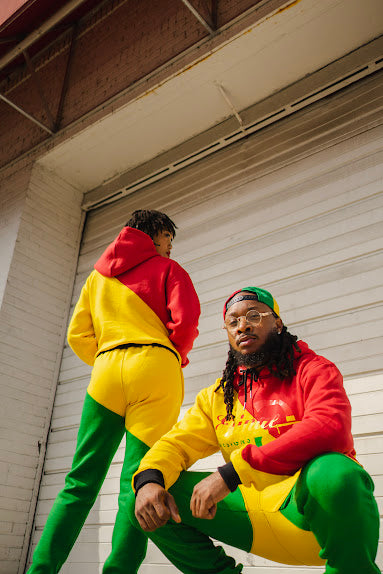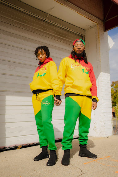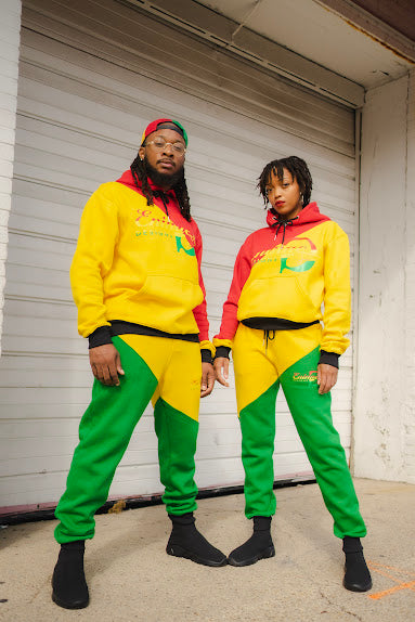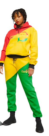 - The Unity sweat suit features the colors red, yellow, and green, which are often associated with cultural symbolism.